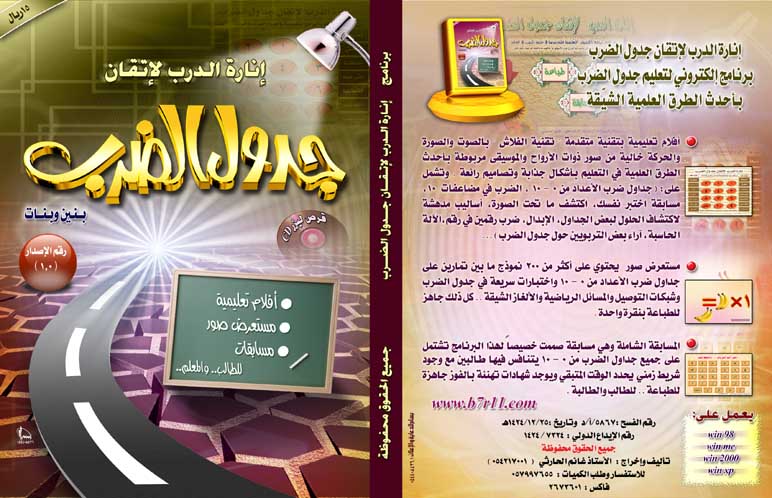 كما أن هناك الكثير من التمارين المميزة والمسابقات والألغاز والتلوين والإختبارات السريعة ونماذج لجدول الضرب 000جاهزة | |